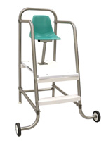 PARAGON MOVABLE GUARD CHAIR, 4' — Allows you to move chair to the most desirable life guarding location. .065" thickness stainless steel with cycolac steps. Semi-pneumatic front wheels.
